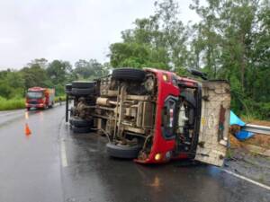Na manhã desta terça-feira (5), por volta da 10h, na cidade de Urussanga, a guarnição do Corpo de Bombeiros foi acionada para o atendimento de um acidente de trânsito no Bairro Linha Rio Maior, sobre a rodovia SC-108. Ao chegarem no local, confirmaram a natureza da ocorrência, tratando-se de uma colisão frontal seguida de capotamento envolvendo um automóvel de passeio e um caminhão de transporte que carregava fumo.