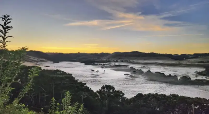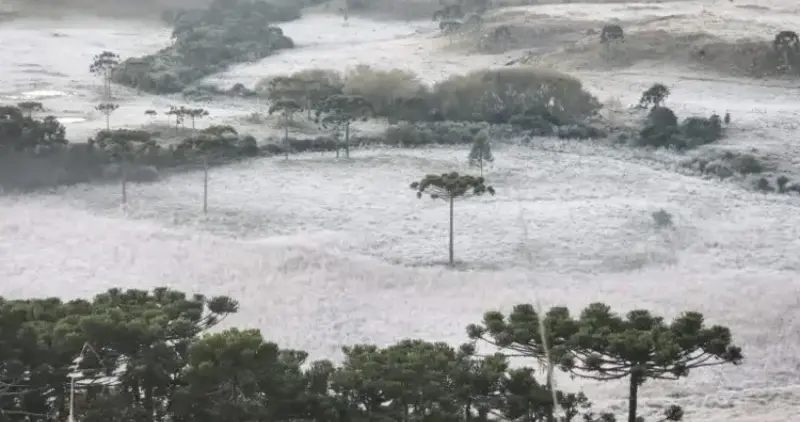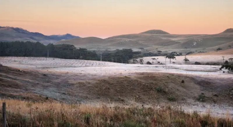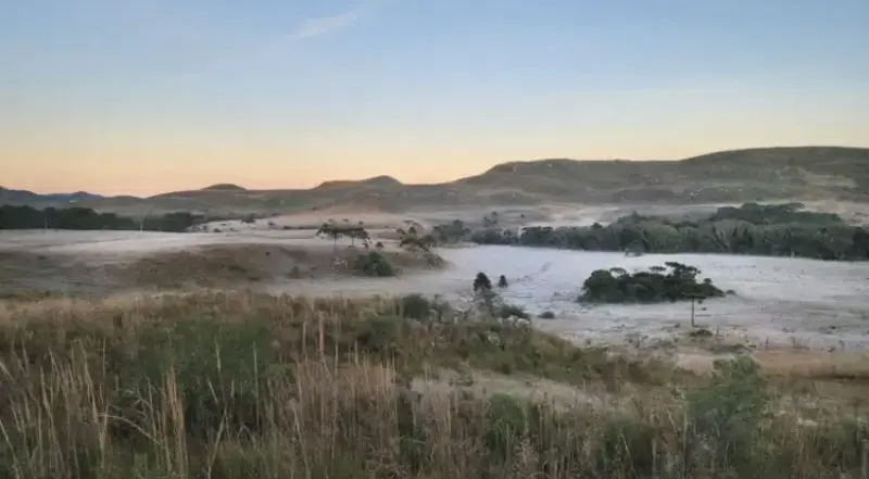 No amanhecer desta quarta-feira, o Vale do Caminhos da Neve, situado a três quilômetros do Centro de São Joaquim, amanheceu esbranquiçado, recoberto por uma grossa camada de gelo, voltando à típica paisagem de inverno na Serra Catarinense.