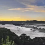 Além da paisagem exuberante, em contraste com o nascer do sol, a geada deixou também vestígios nos gramados próximo ao centro da cidade. Essa foi a terceira geada de maio e a de número 21 no ano de 2023.