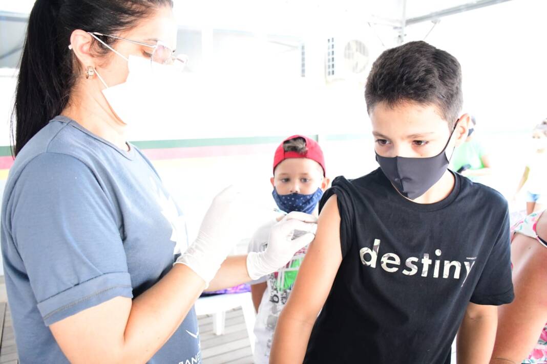 Na tarde de hoje a Secretária Municipal de Saúde de Sombrio deu início à vacinação de crianças de 5 a 11 anos com comorbidades e de 11 anos sem comorbidades, no Posto de Saúde do bairro Parque das Avenidas.