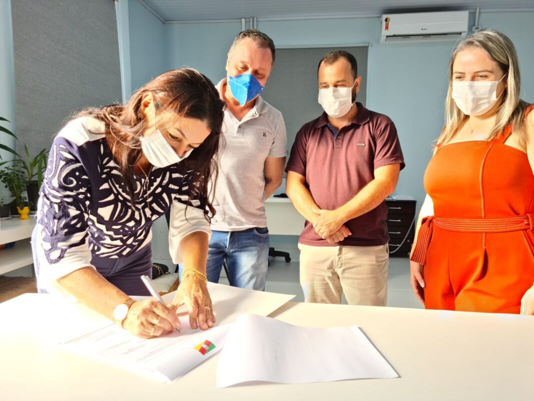 Gislaine Cunha, prefeita de Sombrio, assinou na tarde desta segunda-feira, dia 8, no Hospital Dom Joaquim, um aditivo no convênio com o IMAS, o Instituto Maria Schmidt, que administra a entidade.