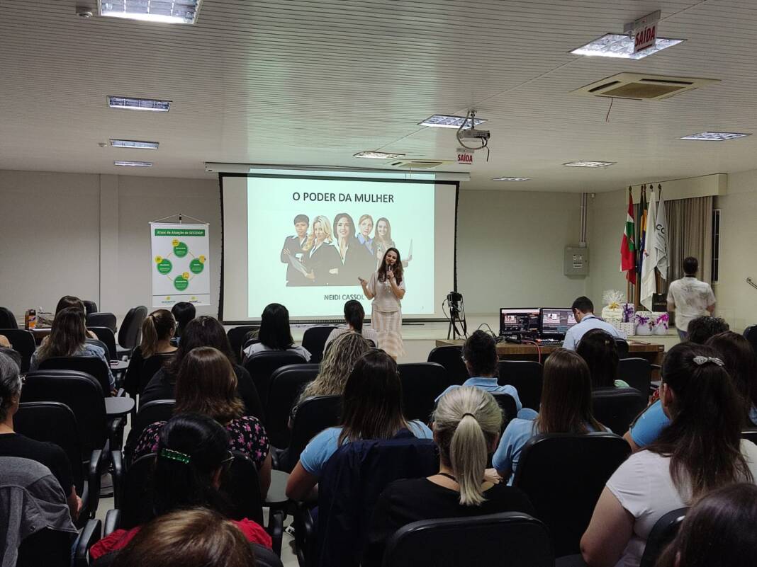 Em comemoração ao mês da mulher o setor de RH da Cooperja promoveu na noite de terça-feira (15/03), no auditório da Sede Administrativa em Jacinto Machado, uma palestra com o tema “O Poder da mulher, promover o empoderamento e valorização da mulher”, com a palestrante Neidi Cassol.