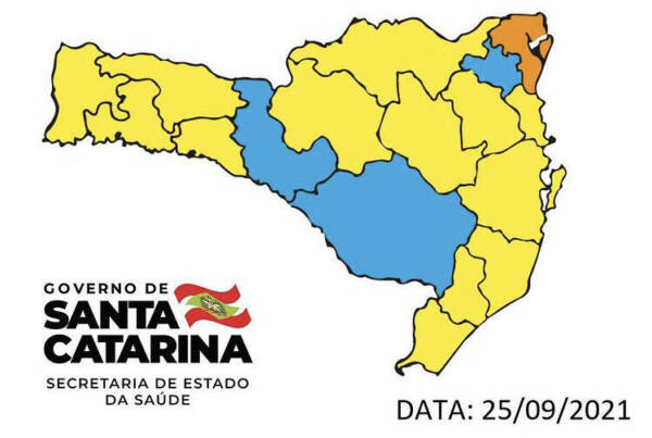 Pela primeira vez, desde a implantação do mapa de Risco Potencial à Covid-19, em Santa Catarina, a cor azul, de risco moderado, aparece na avaliação geral da pandemia no estado.