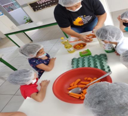 Diante desse problema, as professoras da turma do Infantil IV, Cirlei da Silva Maciel, Deise Casagrande, Jaqueline Ferreira Machado de Borba, Laís Machado Roque e a coordenadora Milena Simone dos Santos, elaboraram atividades para as crianças conhecer o valor nutricional dos alimentos, incentivando-as a experimentar aqueles oferecidos nas refeições.