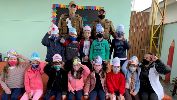 Na ocasião, os policiais foram até a escola, onde conversaram e responderam às perguntas feitas pelas crianças e realizaram uma demonstração do serviço do Thor.