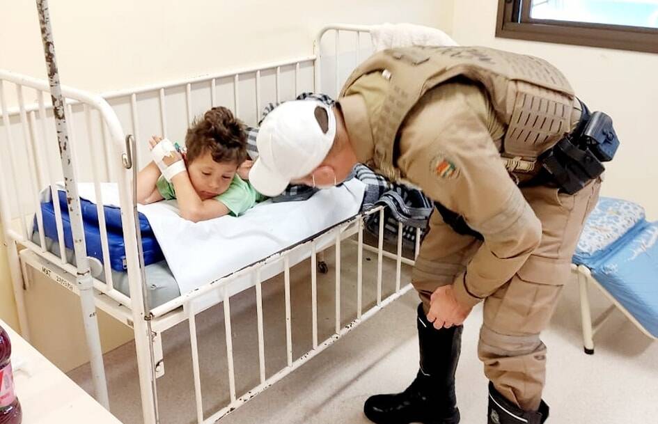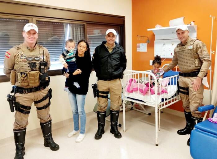 Nesta terça-feira, 2, policiais da PMRv estiveram no Hospital Santa Catarina, em Criciúma, visitando as crianças envolvidas no acidente de trânsito ocorrido na última sexta-feira, 29, quando um veículo caiu no Rio Sangão.
