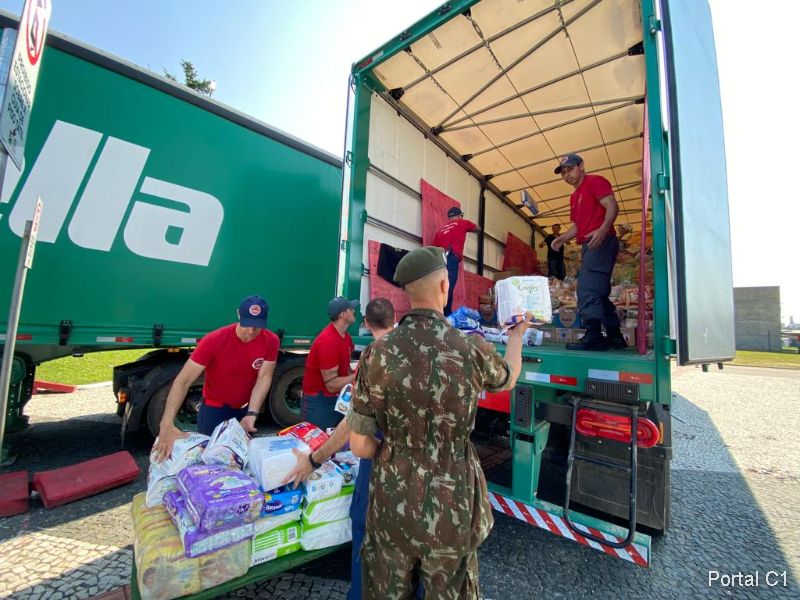 As doações foram levadas em comboio para um Centro de Distribuição na capital gaúcha e, posteriormente, encaminhadas para as cidades afetadas pelo temporal.
