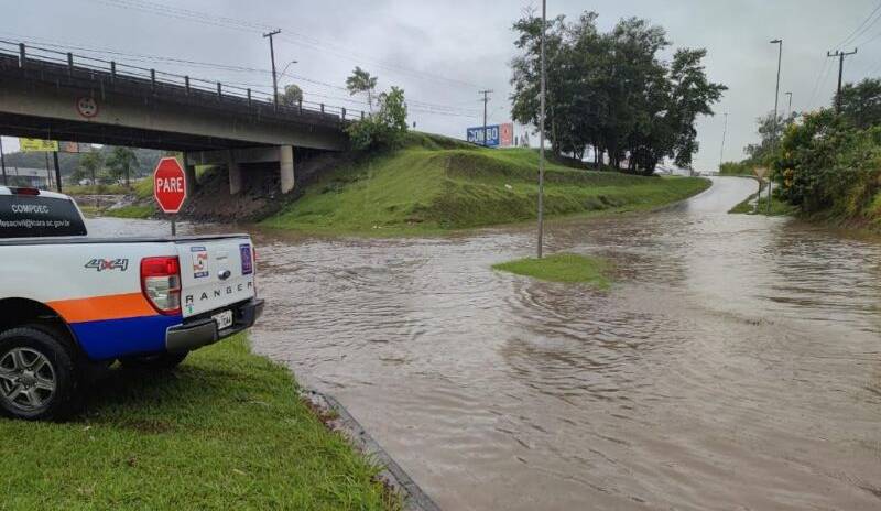 Na metade da manhã desta segunda-feira, o Anel Viário foi parcialmente interditado sob o viaduto da rodovia Paulino Búrigo (SC-445), pois o trecho está alagado. Outros locais monitorados são os rios dos Porcos, em Vila Nova, e Urussanga, em Esplanada.