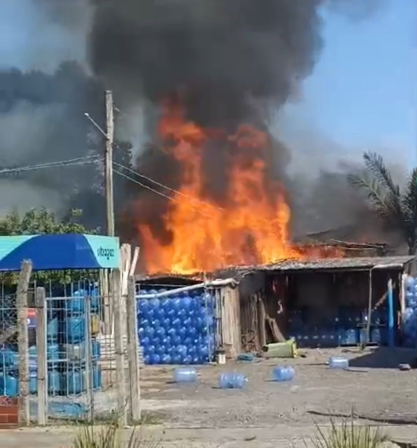 A área teve que ser recuada por risco de explosão dos botijões e os infláveis no local. Ninguém se feriu, houveram apenas danos materiais.