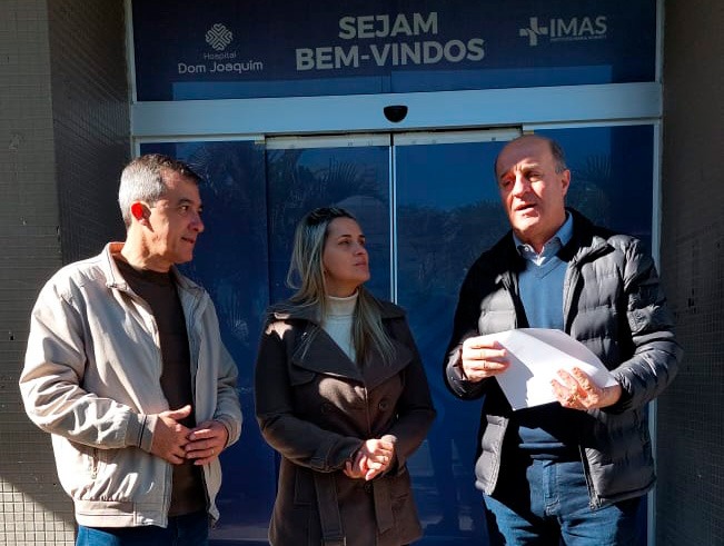 O deputado estadual Zé Milton, acompanhado do vereador José Eraldo Soares “Peri”, esteve nessa segunda-feira (1), no hospital Dom Joaquim, com a gerente de enfermagem Beatriz Schutz, para entregar a emenda parlamentar no valor de R$ 250 para a instituição de saúde.