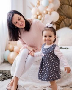 Malu Goulart com sua princesa Sofia. O tesouro vestindo Catherine Store.