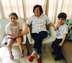 Minha mãe Ermelinda Benedet da Silva com os bisnetos Sophia Zanette e Vicente Oliveira.