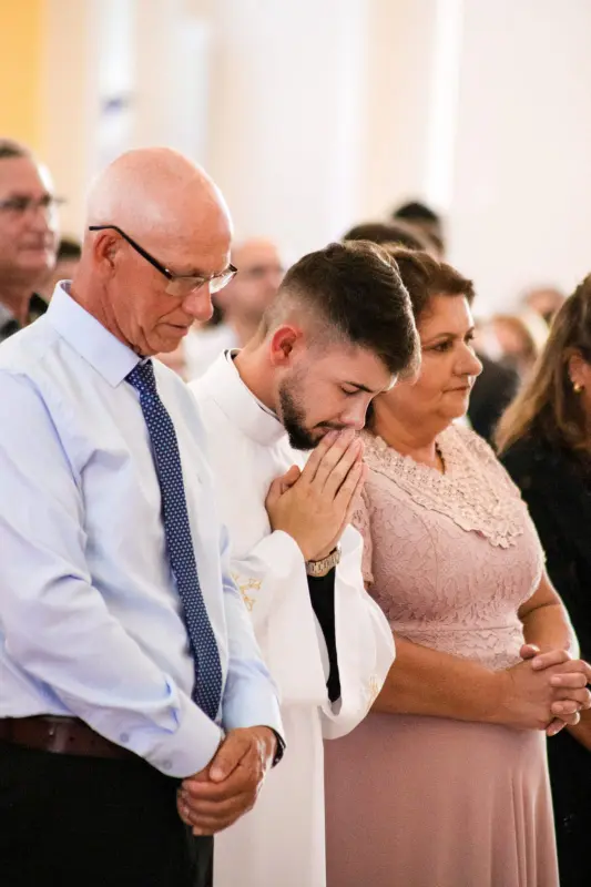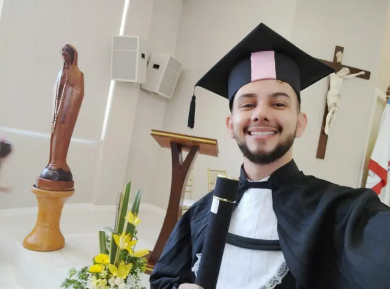 “Sempre tive uma experiência muito profunda com a religião, a igreja sempre fez parte de minha história, meus pais são muitos católicos. Os símbolos religiosos sempre estiveram muito presentes no meu lar, o que contribuiu muito para que eu entendesse o caminho que Deus queria para mim. No período da adolescência me afastei um pouco da igreja, mas nos meus 15 anos tive uma experiência com um grupo de oração de jovens que me acolheu e neste grupo revivi uma experiência com Deus, retornei para a igreja e me aprofundei nos Ministério que eu descobri que podia servia, fui desenvolvendo meus dons dentro da igreja. Namorei, estudei, trabalhei fora da igreja e quando estava prestes a iniciar o curso de Fisioterapia, com a vida estável, senti que Deus desejava algo para mim, mas não conseguia entender. Nasceu dentro do meu coração o desejo de corresponder a Deus de uma forma mais profunda, foi aí que decidi viver um tempo de silêncio para entender os desejos de Deus”, revela o diácono.