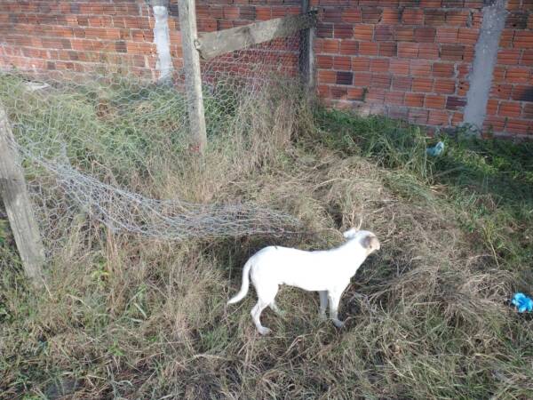 No local, mais uma vez, foi resgatado um cachorro em situação de maus-tratos.