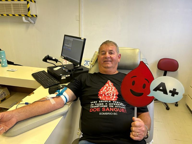 Na semana passada, o sombriense Cláudio Zaccaron fez a última doação no Hemosc de Criciúma. O ato aconteceu um dia antes de completar 70 anos, idade limite para ser doador
