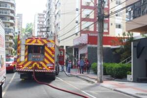 Duas pessoas foram hospitalizadas por terem inalado fumaça durante o incêndio que atingiu uma sala comercial no Centro de Criciúma. Trata-se de uma jovem de 23 anos e um homem com cerca de 40 anos, ambos encaminhados ao Hospital São José (HSJ) e passam bem.