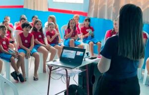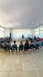 Na Escola Municipal de Ensino Fundamental Tavane Graeff Costamilan, em Balneário Gaivota, as palestras aconteceram nos dois turnos e reuniram estudantes do 4º e 5º anos. No dia 20, às 14h, participaram as turmas do 4º e 5º ano vespertino, com um total de 36 alunos. Já no dia 21, às 8h30, foi a vez dos estudantes do 4º e 5º ano matutino, somando 24 crianças. Durante as apresentações, foram discutidos temas essenciais, como o uso consciente da água e o impacto do saneamento na saúde e no meio ambiente.