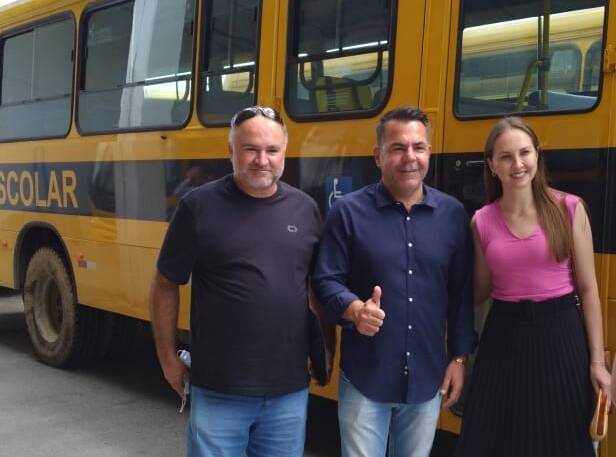 A Administração Municipal esteve representada na manhã da última quinta-feira, dia 23, através da secretária de Educação, Estela Simoni Fermo, diretora do CMEI Escadinha do Tempo, Jovana Peterle, e do encarregado da frota, Chico Merêncio, o “Chico do Ônibus”, em ato de entrega de novos veículos pelo Governo do Estado.