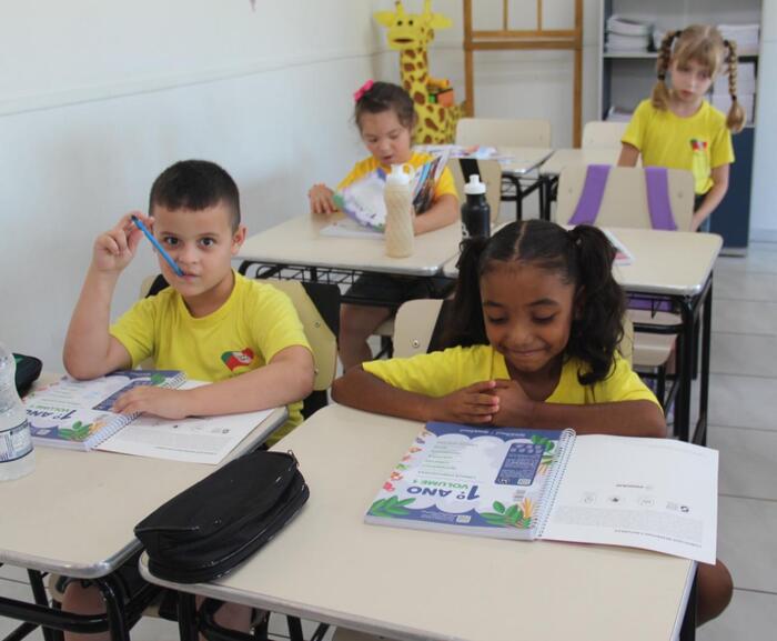 Ponain Silva, professora do 1º ano da rede municipal de Sombrio, comemora a chegada do material: “As apostilas estão ótimas, bem adequadas às turmas, com conteúdos da base curricular comum e atividades lúdicas que facilitam a alfabetização. Eu gosto muito de usar este material em sala e as crianças ficam muito felizes quando recebem”.