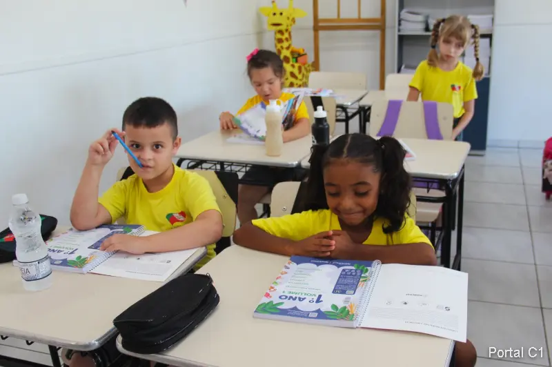 Depois, os alunos do Infantil 5 ao 9º ano, receberam apostilas do grupo positivo e para todos, diversas modalidades esportivas estiveram disponíveis no contraturno.