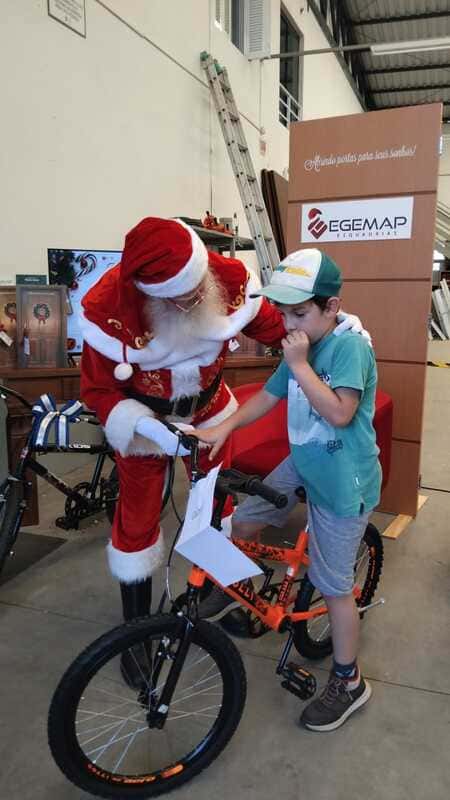 O ponto alto da tarde foi a entrega da bicicleta à criança sorteada, um momento de grande emoção. Além disso, cada entrega simbolizou o compromisso da Egemap em promover ações que vão além do comercial, fortalecendo o vínculo com a comunidade e disseminando gestos de carinho e solidariedade.