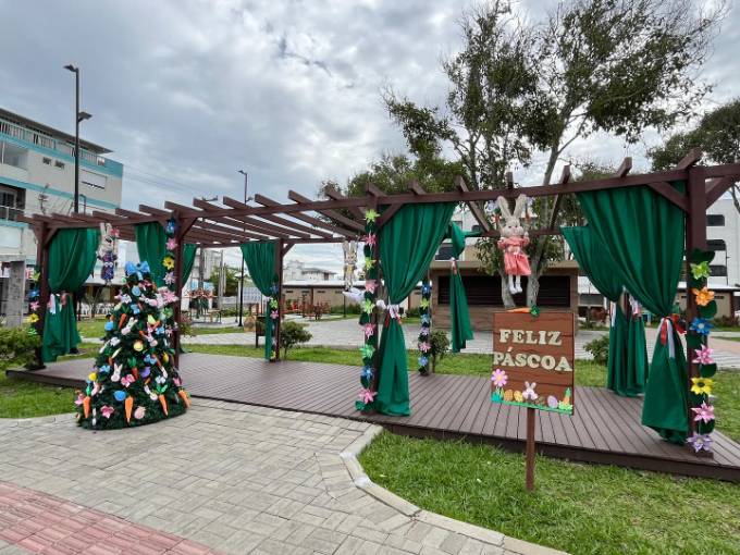 O município de Balneário Arroio do Silva está em clima de páscoa. A Praça Central, as rótulas dos principais pontos da cidade e o Centro Administrativo Prefeito José Élio Borges receberam uma decoração especial.