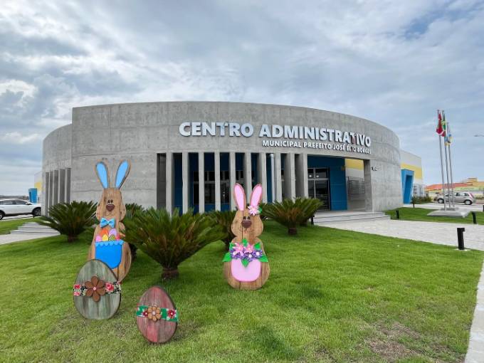 Os coelhinhos dão boas-vindas aos dias que antecedem à páscoa. A decoração, que chama a atenção e encanta quem passa pelos locais, foi feita pela equipe da secretaria municipal de educação. As servidoras públicas Alessandra e Rafaela capricharam nos detalhes e, na montagem, contaram com o apoio dos servidores da secretaria de obras, Felipe e Israel.