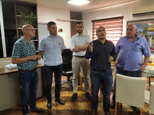 Prefeito João Batista Mezzari (Gaiola), de Jacinto Machado, recebeu em seu gabinete na manhã desta quinta-feira, 10 de fevereiro, comitiva do secretário de Estado de Infraestrutura e Mobilidade, Thiago Vieira, que esteve na região para vistoria das obras de pavimentação da SC-108, trecho entre o município e Praia Grande.