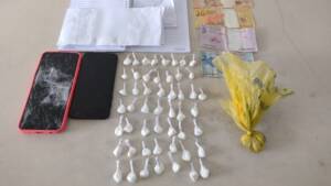 Desse modo, o casal foi preso em flagrante; as drogas que totalizaram 36 g de cocaína e 10 g de maconha, o caderno e os dois celulares foram apreendidos e encaminhados para a Central de Polícia Civil (CPP), juntamente com os suspeitos envolvidos.