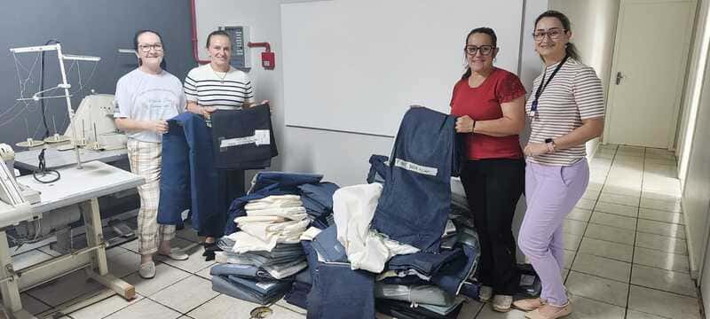 Na última semana a primeira-dama, Claudete Brambila, a professora do Curso de Costura Industrial, Fátima Rosania Matias, e a Coordenadora dos Clubes de Mães e da Terceira Idade, Suzana Rocha, estiveram na empresa Criativa Têxtil, onde receberam a doação de um montante significativo de jeans e sarja, estima-se cerca de 500 metros. Além disso, também doaram tesouras e piques (utilizados para retirar as linhas da peça).