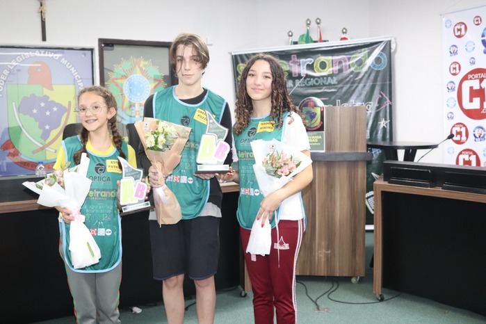 O terceiro lugar ficou para Ester Patrício, do 6º ano da escola Antônio Stuart. Por fim, os estudantes Gregory Pozzer e Isadora Pereira, do 8º e 9º ano, respectivamente, protagonizaram uma disputa extraordinária. Sem cometer nenhum erro, os dois duelaram na soletração por quase uma hora, até que em uma decisão discutida com os envolvidos, a dupla foi declarada vencedora do primeiro lugar, e dividiu a premiação. Gregory é aluno da EEF Doralina Clezar da Silva, de Balneário Gaivota, e Isadora do Colégio Iemes, de Sombrio.