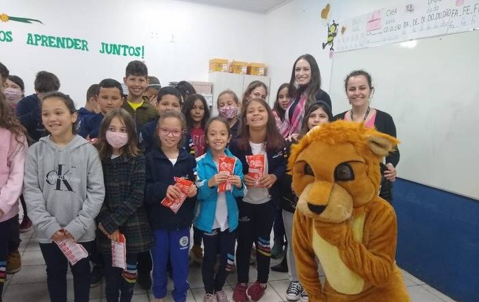 A ação contou com a presença do Sr. Leão, mascote do Lions Club, que realizou a distribuição de kits de higiene bucal para todas as crianças do 3°, 4° e 5° ano.