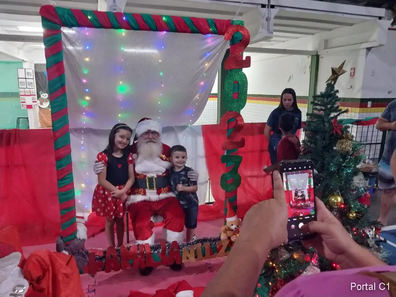 Antes do lanche delicioso, esta grande noite ainda contava com uma surpresa que encantou a todos: Papai Noel, convidado mais do que especial, da noite, foi até a Escola Nilza conversar com os pequenos, cantar lindas músicas natalinas e, claro, tirar fotos!