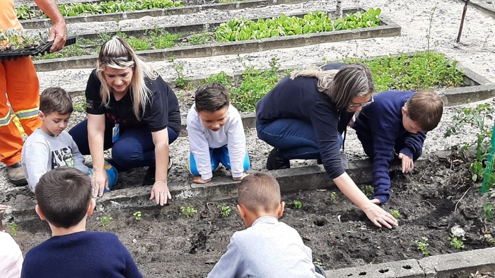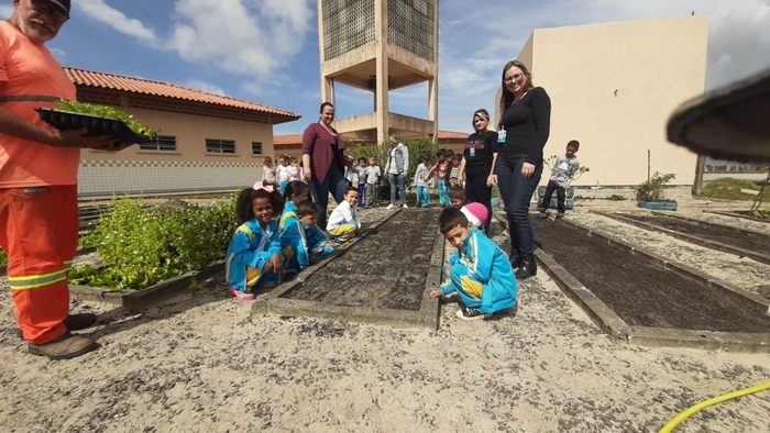 Na escola da Praia da Caçamba o plantio das mudas da horta foi realizado em setembro com as turmas do Pré II da manhã e Pré I da tarde. Na unidade, o projeto conta com o acompanhamento da nutricionista, tendo o apoio da diretora Juliana Rafael Gomes e da assessora pedagógica Aline Favreto.