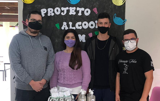Os estudantes realizaram o projeto “Produção de Álcool em Gel”, o qual tem por objetivo conscientizar os participantes sobre o uso do álcool em gel 70%, como medida preventiva para as infecções virais (com ênfase na gripe H1N1 e Covid -19.