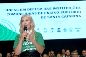 A representatividade do evento, evidenciada por um palco repleto de lideranças dos mais variados segmentos, para a deputado, deixam muito claro o papel a unanimidade da Unesc e das Instituições Comunitárias. “A reitora Luciane é exemplo de liderança e a prova disso é a representação que tem aqui: isso é Universidade Comunitária. Cada vez que venho aqui tenho mais orgulho dessa Universidade. Vocês, estudantes que estão conosco nessa luta, professores, colaboradores, são a esperança de dias melhores”, acrescentou.
