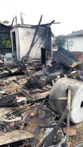 Os bombeiros foram acionados, mas infelizmente a família perdeu tudo no incêndio e estão, no momento, abrigados na casa de uma vizinha.