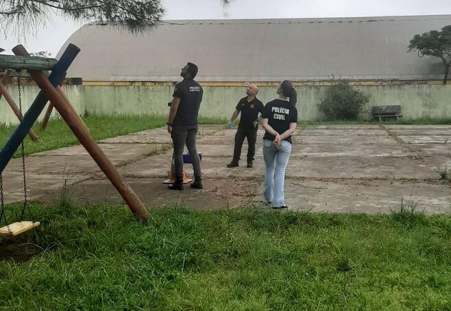A orientadora educacional relatou aos policiais que durante uma aula externa, na quadra de esportes, um aluno encontrou o feto, que estava dentro de um cone.