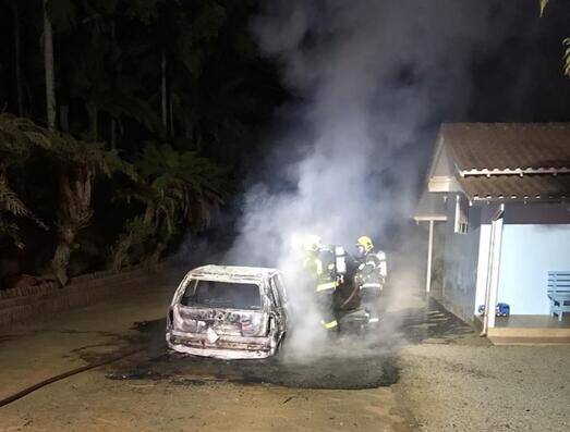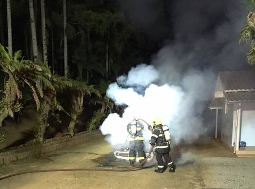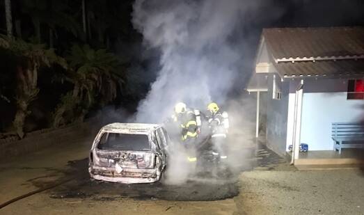 Quando a guarnição chegou no local o veículo, um Chevrolet Corsa, já estava totalmente tomado pelo fogo no pátio da residência.