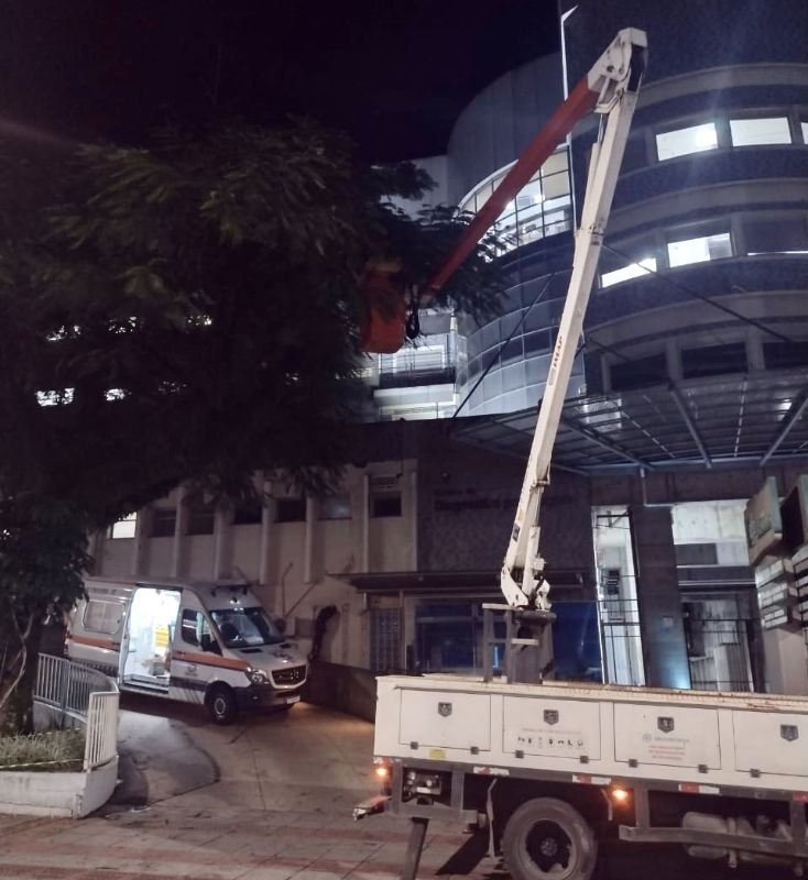 O Corpo de Bombeiros foi acionado na noite dessa quinta-feira, no Hospital São José, para a retirada de abelhas. Os insetos estavam em uma árvore na rampa de acesso das ambulâncias.