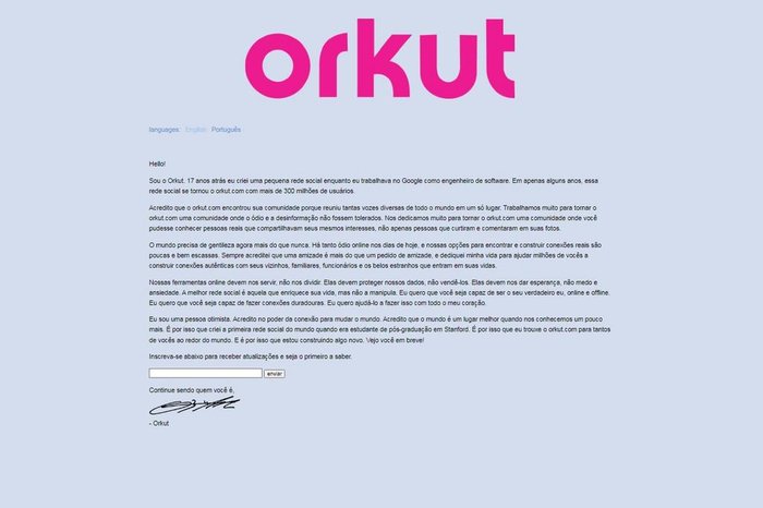 Ao fim do comunicado, há um espaço em que é possível inserir o e-mail e se inscrever para receber atualizações sobre esse novo projeto. Ainda não se sabe se a rede social voltará a funcionar, com adaptações e atualizações ou se haverá a formulação de algo totalmente novo que receberá apenas o nome da antiga rede.