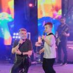 Em um momento conversou com a prefeita Gislaine Cunha e seu filho João Gabriel Valim, antes de pai e filho cantarem a música de Natal gravada por Gabriel.