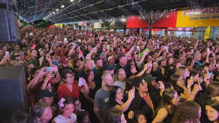 O cantor e compositor Sombriense Gabriel Valim lotou a Rua Coberta de Sombrio em show realizado pela Prefeitura Municipal, dentro da programação Natal Encantado 2022.