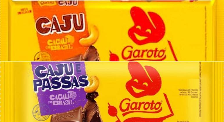 Os lotes em questão são o 225212941G: chocolate ao leite com Castanhas de Caju, marca Garoto, tablete 80g, validade 09/09/2023 e o 225312941G: chocolate ao leite com Castanhas de Caju e Uvas Passas, marca Garoto, tablete 80g, validade 09/09/2023.