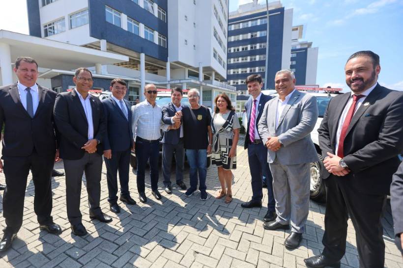 A quarta-feira, 7, foi um marco significativo na modernização e no fortalecimento da Polícia Civil de Santa Catarina. Em uma cerimônia realizada na Secretaria de Estado da Segurança Pública, o governador Jorginho Mello, o secretário da Segurança Pública, Sargento Lima e o delegado-geral da PCSC, Ulisses Gabriel, entregaram 23 notebooks de última geração e três viaturas de patrulha caracterizadas. A vice-governadora Marilisa Boehm também participou da cerimônia.