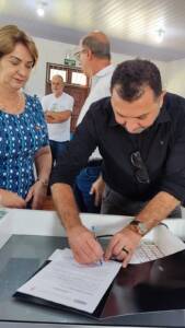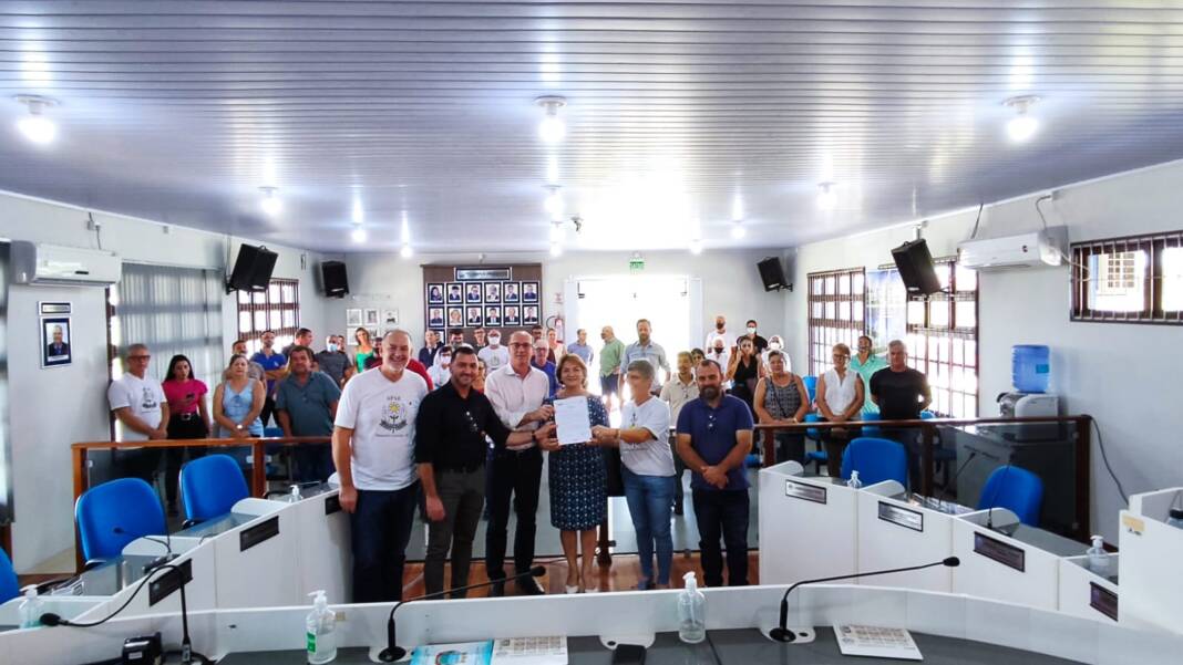 A oficialização do repasse do Governo do Estado para o município de Gaivota aconteceu na Câmara de Vereadores do Balneário, com a presença de representantes da Fundação, do prefeito Everaldo dos Santos, o Kekinha, e de Zé Milton.