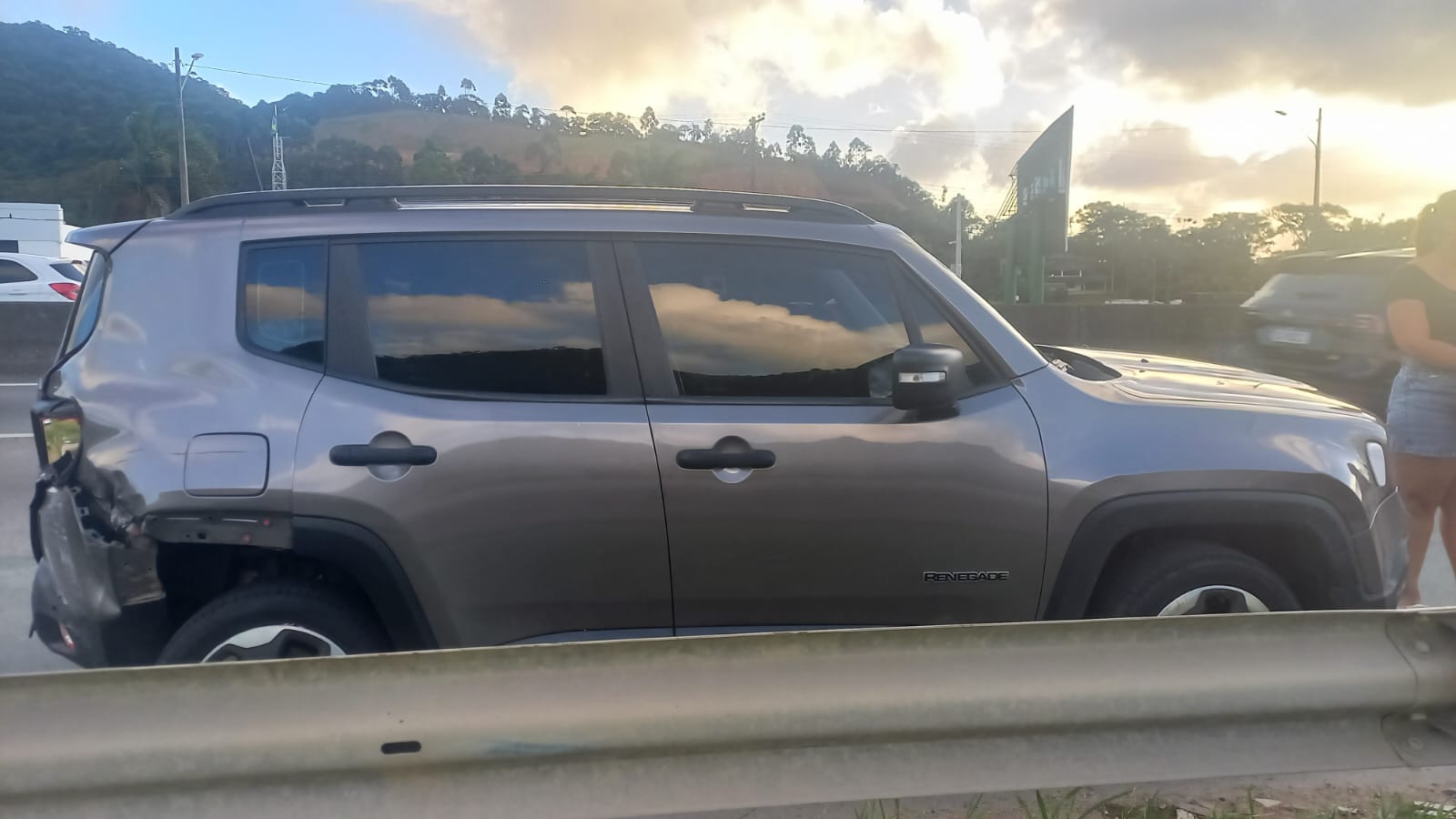 Após a colisão, o Fox saiu da pista e percorreu mais alguns metros pela grama na lateral da BR-101, até cair em uma vala.