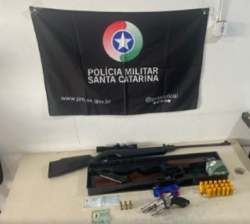 A vítima, um jovem de 25 anos, relatou ter sido agredida pelo padrasto e que o agressor possuía armas em casa. Ao chegar à residência, a guarnição encontrou o homem, de 41 anos, e realizou uma busca no local, onde foram apreendidos um revólver calibre .38 e uma espingarda sem registro.