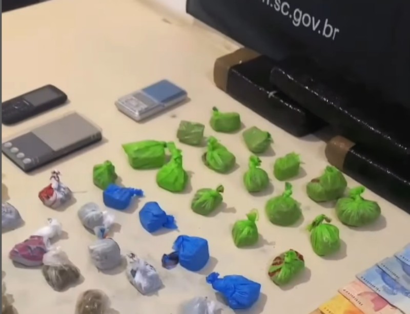 Conforme a PM, foram encontrados cocaína, tijolos de maconha e crack. “Além de dinheiro e demais utensílios para o exercício da atividade ilegal”, escreveu a PM na rede social (vídeo aqui).