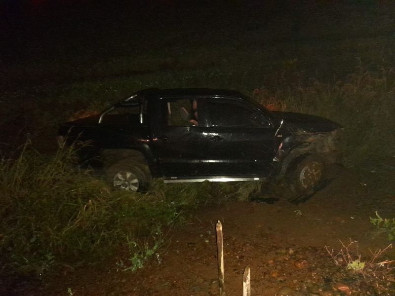 Homem fica ferido após capotar camionete em uma granja de arroz